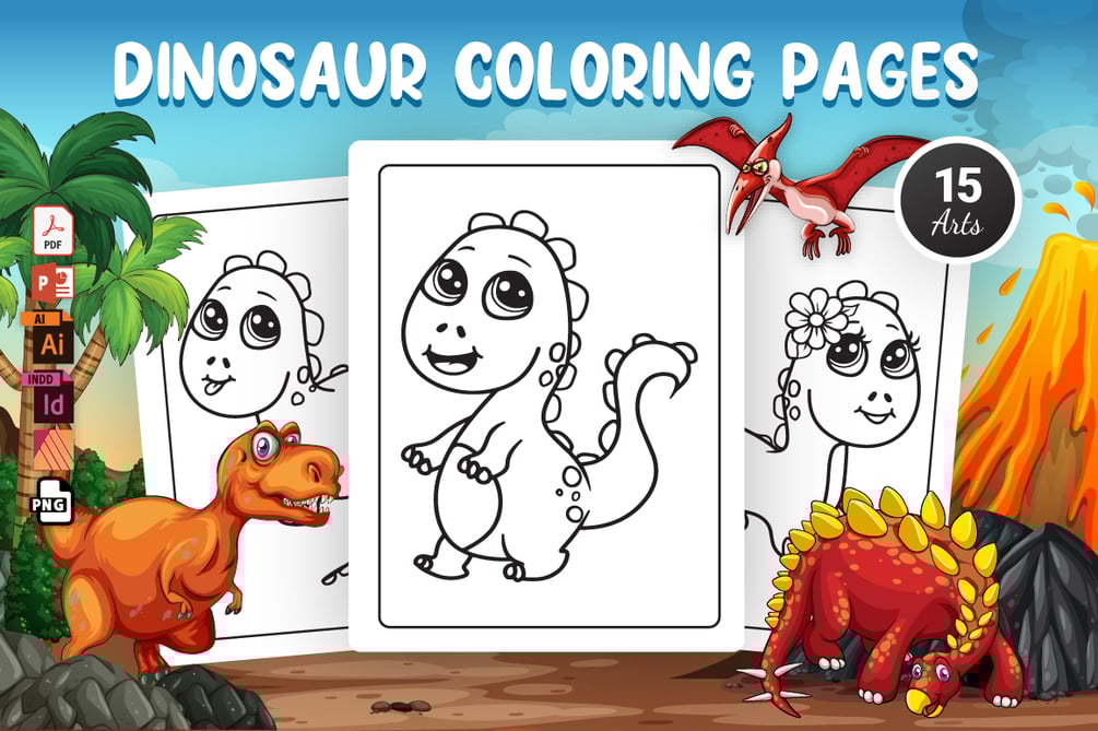 Download "Dinosaur Coloring Pages" instantly with PDF Ready to upload on KDP with 9 File Formats source files.