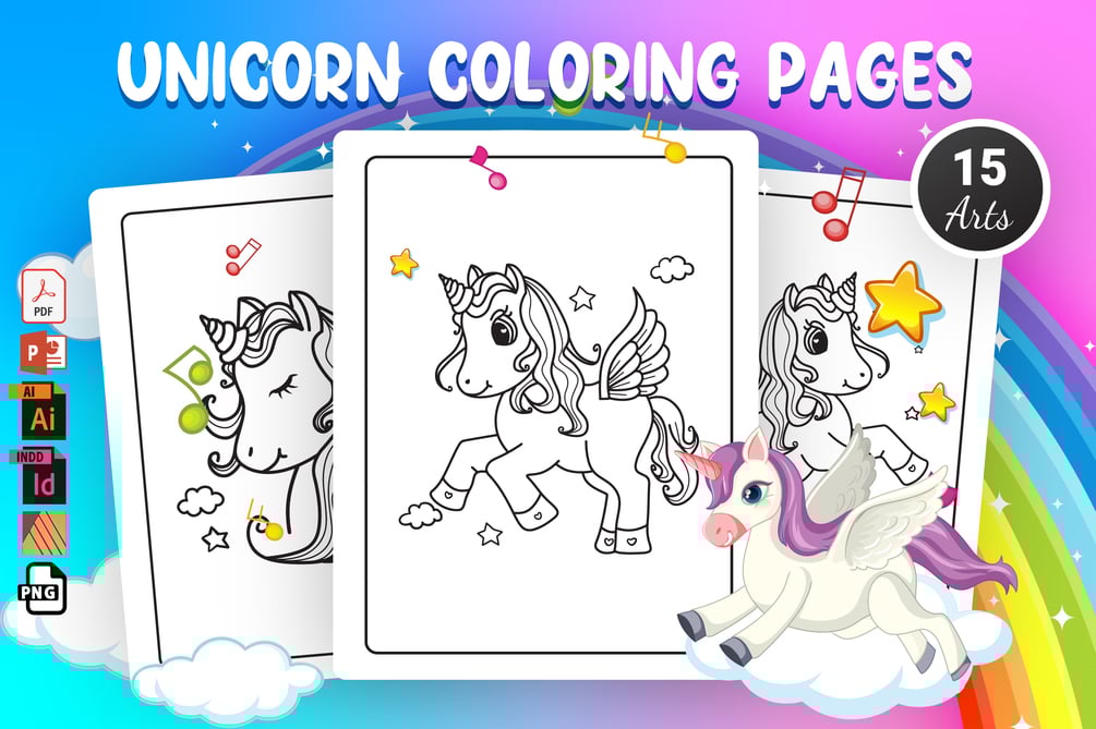 Download "Unicorn Coloring Pages" instantly with PDF Ready to upload on KDP with 9 File Formats source files.