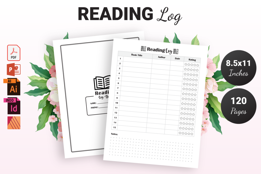 Download “Reading Log” instantly with PDF Ready to upload on KDP with PowerPoint, Affinity Publisher, Illustrator, InDesign source files for customization.